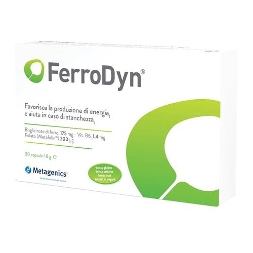 Integratore alimentare a base di ferro e vitamine B, favorisce la produzione di energia e aiuta in caso di stanchezza. È una formulazione completa di ferro che sostiene la formazione dei globuli rossi, la produzione di energia e aiuta in caso di affaticamento. La forma di ferro utilizzata è bivalente, chelata a due amminoacidi a formare il Bisglicinato di ferro. La ricerca scientifica ha dimostrato che questa formulazione di ferro è ben assorbita dall’organismo e presenta una buona tollerabilità gastrointestinale. Il Metafolin è la forma naturale più attiva ed efficace di folato: è immediatamente disponibile e attiva nell’organismo.