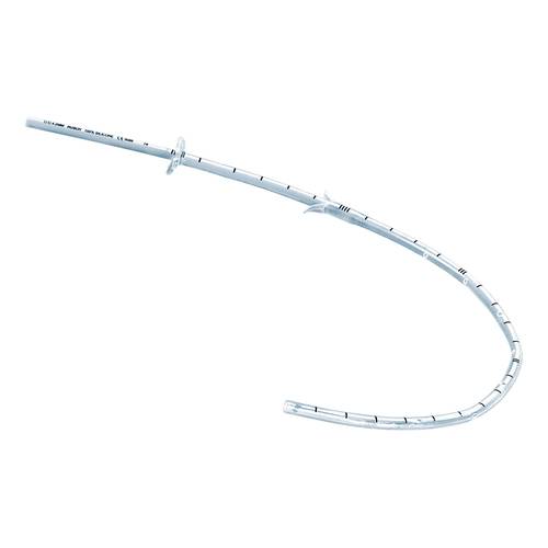 protesi per ureterocutaneostomia disponibile in puro silicone o wiruthan, trasparente, con due alette di bloccaggio, disco di fissaggio, foro centrale e fori di drenaggio ogni 10 mm disposti a spirale, in confezione singola sterile con modo d' uso.